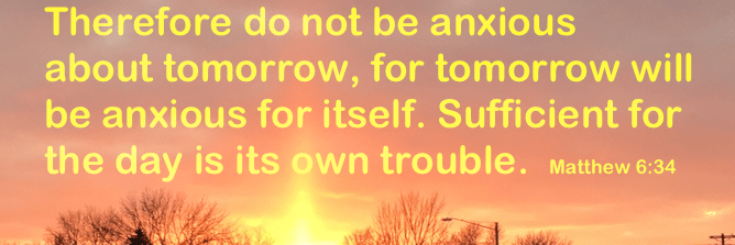 “Therefore do not be anxious about tomorrow, for tomorrow will be anxious for itself. Sufficient for the day is its own trouble.